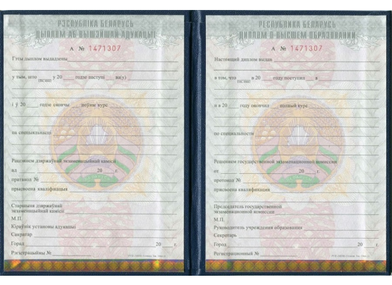 Покупая диплом о высшем образовании Белоруссии 2011 - 2025 гг. в Компании «EXPRESS-Дипломы», вы можете быть уверены в его достоверности и соответствии государственным нормам и требованиям. Мы гарантируем, что наши Диплом о высшем образовании Белоруссии 2011 - 2025 гг. заполняются по учебному плану нужного учебного заведения на нужный год окончания, делается всё по уставу.