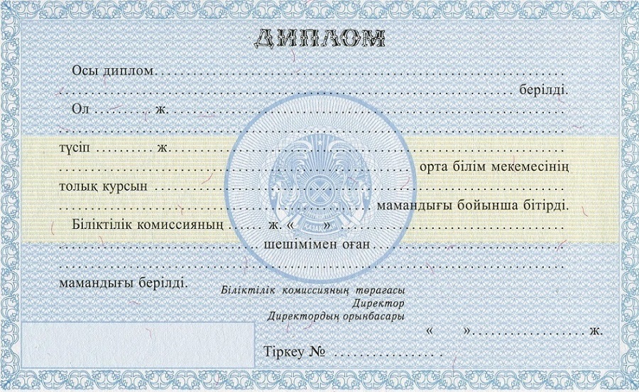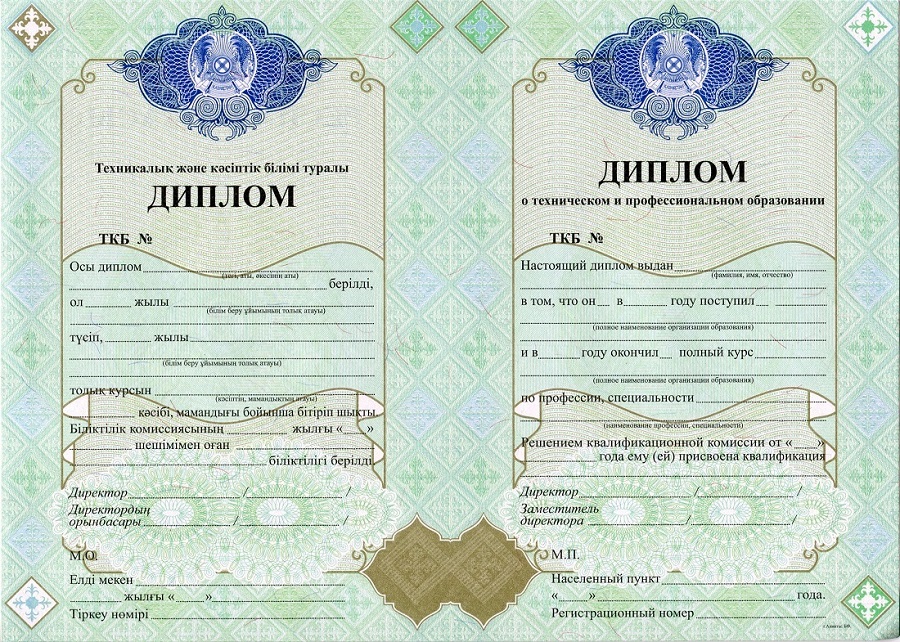 Диплом техникума Казахстана 2000 - 2025 гг.