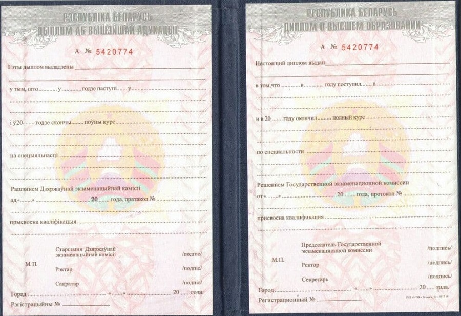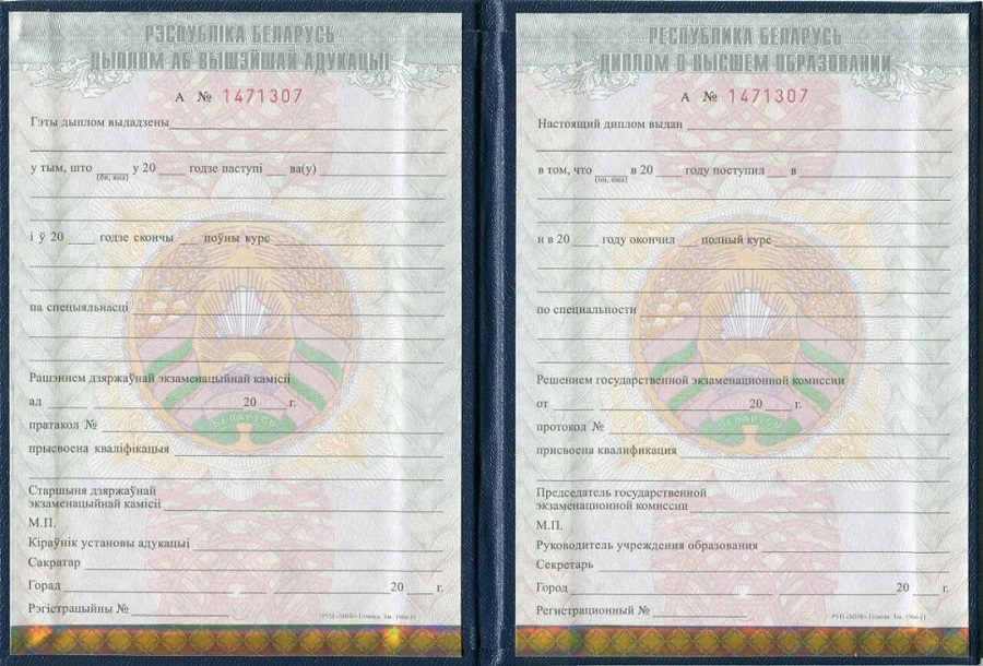 Диплом о высшем образовании Белоруссии 2011 - 2025 гг.