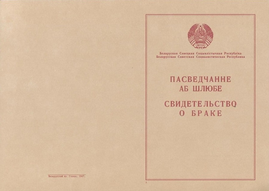 Свидетельство о заключении брака Белоруссии 1940 - 1949 гг.